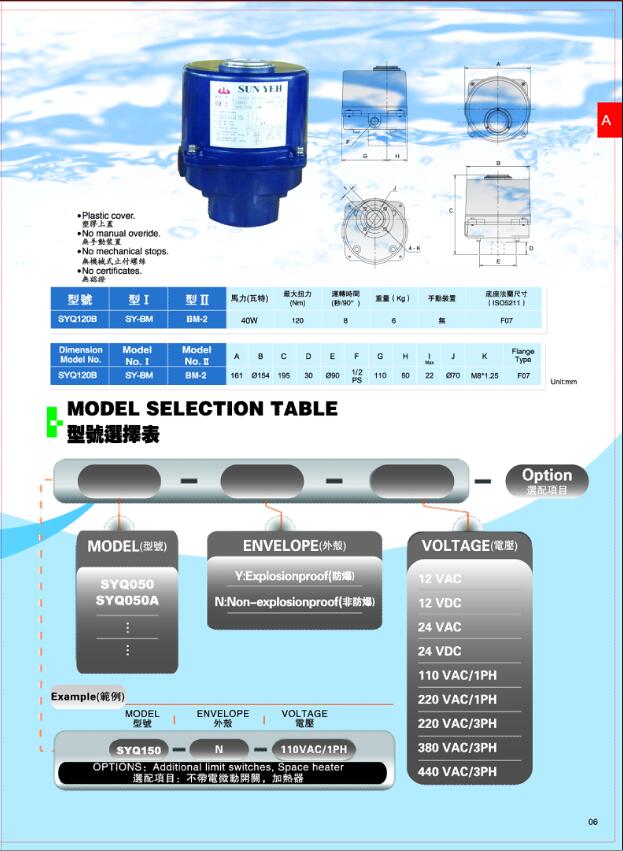臺(tái)灣SUN YEH山野電動(dòng)執(zhí)行器